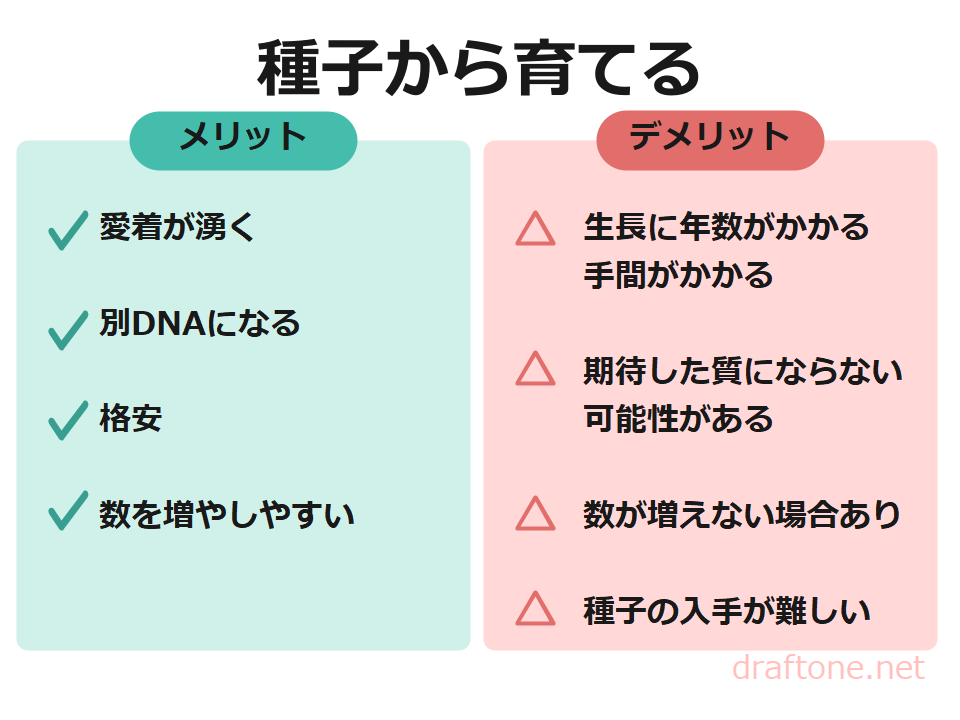 今回は種子から育てるメリット・デメリットについて解説しました。
